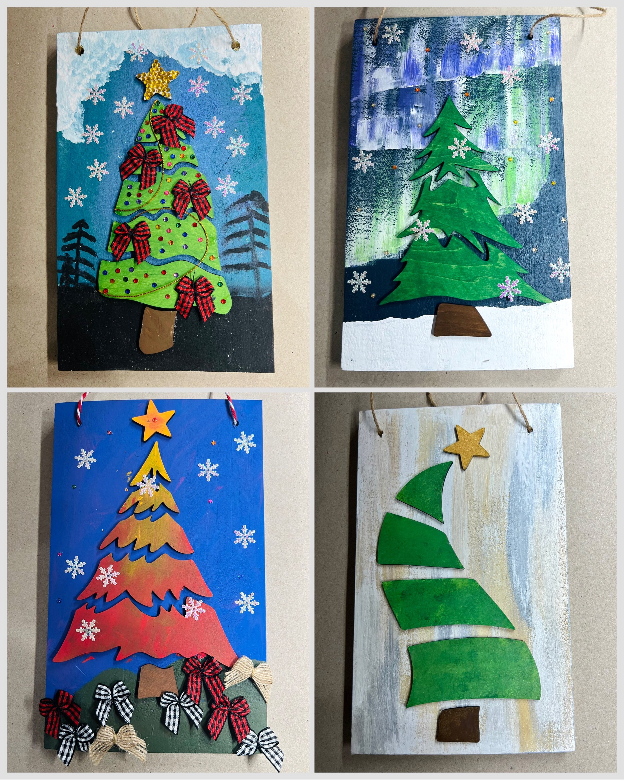 I offer hands-on art workshops featuring my original, hand-drawn designs turned into layered wood, resin, or acrylic projects.